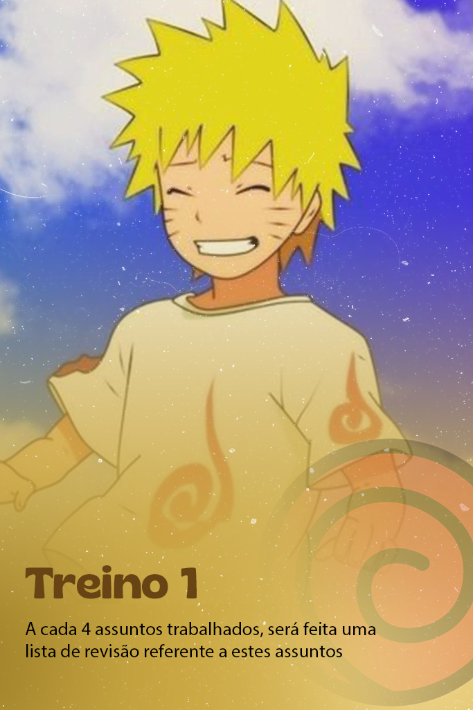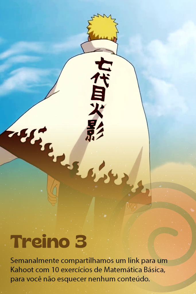 O Naruto tinha um sonho: ser um Hokage, o que significava ser o ninja mais forte da aldeia! No entanto, para chegar lá, ele teve que aprender a lutar e treinar muito, se frustrou, se sentiu impotente e até achou que não conseguiria. Com muita resiliência e treino, ele não desistiu, se tornando um Hokage. E foi assim que nasceu o meu método de estudo Hokage: focamos no treino, superando qualquer adversidade para conquistar o SEU grande sonho de entrar para a faculdade.